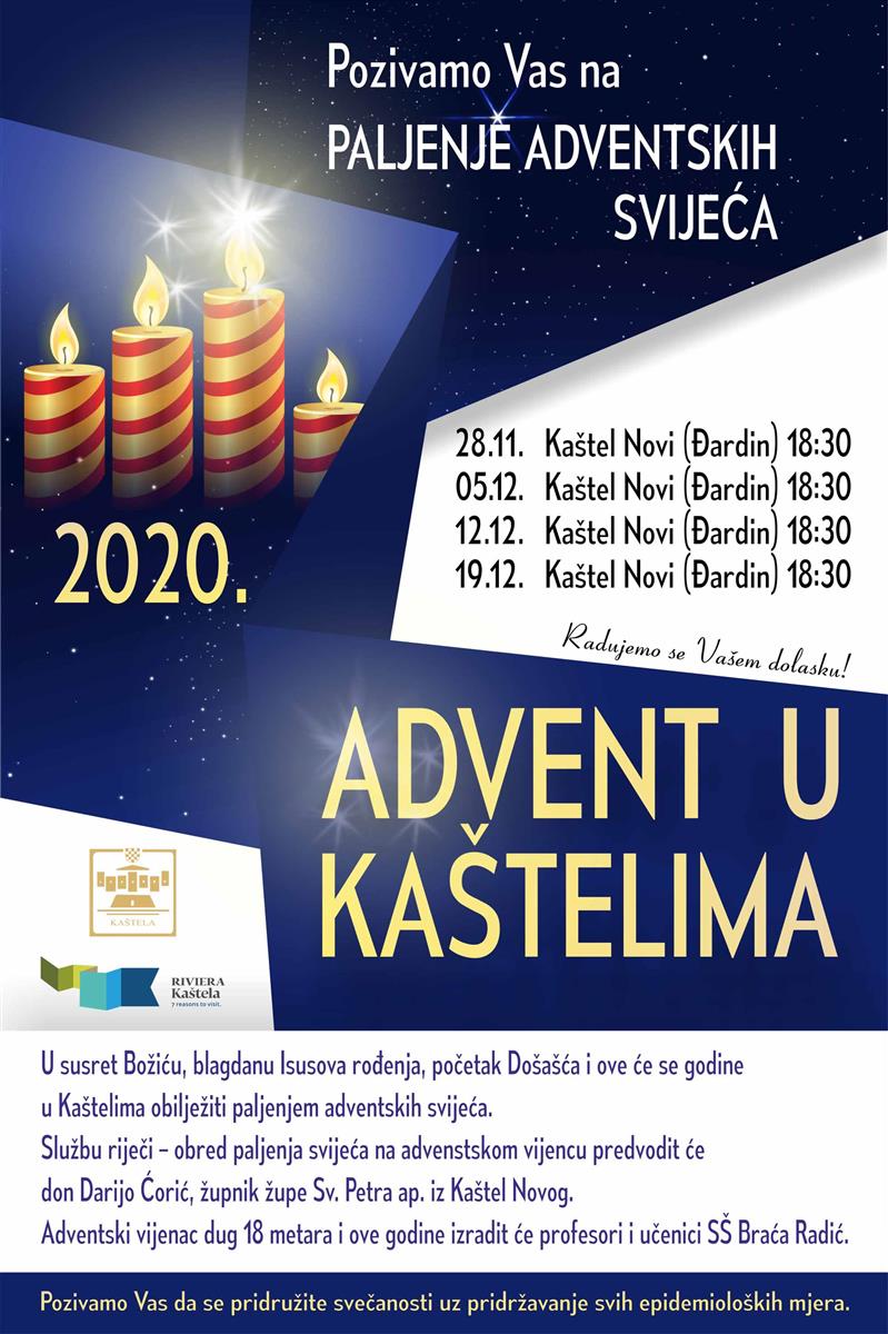 Prvu adventsku svijeću upalit će gradonačelnik Denis Ivanović. Adventski vijenac izradili su učenici i profesori Srednje škole Braća Radić iz Kaštel Štafilića. Svi oni koji će nazočiti ovom događanju, potrebno je da se strogo pridržavaju svih epidemioloških mjera i uputa Nacionalnog stožera.