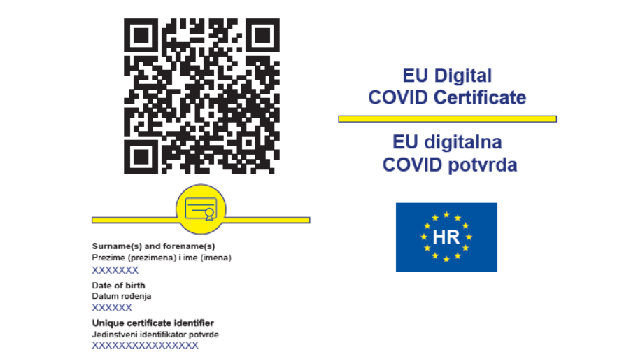 S obzirom na učestale upite o mogućnosti dobivanja EU digitalne COVID potvrde nakon cijepljenja prvom dozom cjepiva ili mogućnosti da se potvrda o cijepljenju prvom dozom cjepiva prizna kao drugi odgovarajući dokaz u smislu točke IV. Odluke o uvođenju posebne sigurnosne mjere obveznog testiranja dužnosnika, državnih službenika i namještenika, službenika i namještenika u lokalnoj i područnoj (regionalnoj) samoupravi te zaposlenika trgovačkih društava i ustanova („Narodne novine“ broj 121/21) ističemo kako se EU digitalna COVID potvrda može dobiti:
