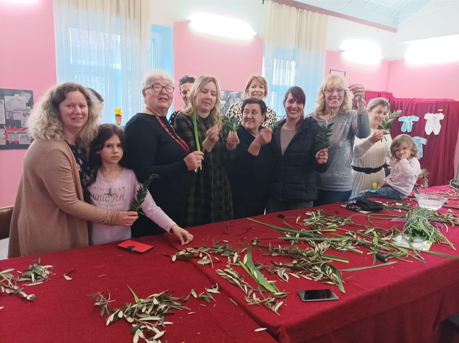 Maslinove grančice ukrašene golubicama izrađene na radionici polaznice će odnijeti na blagoslov na blagdan Cvjetnice.