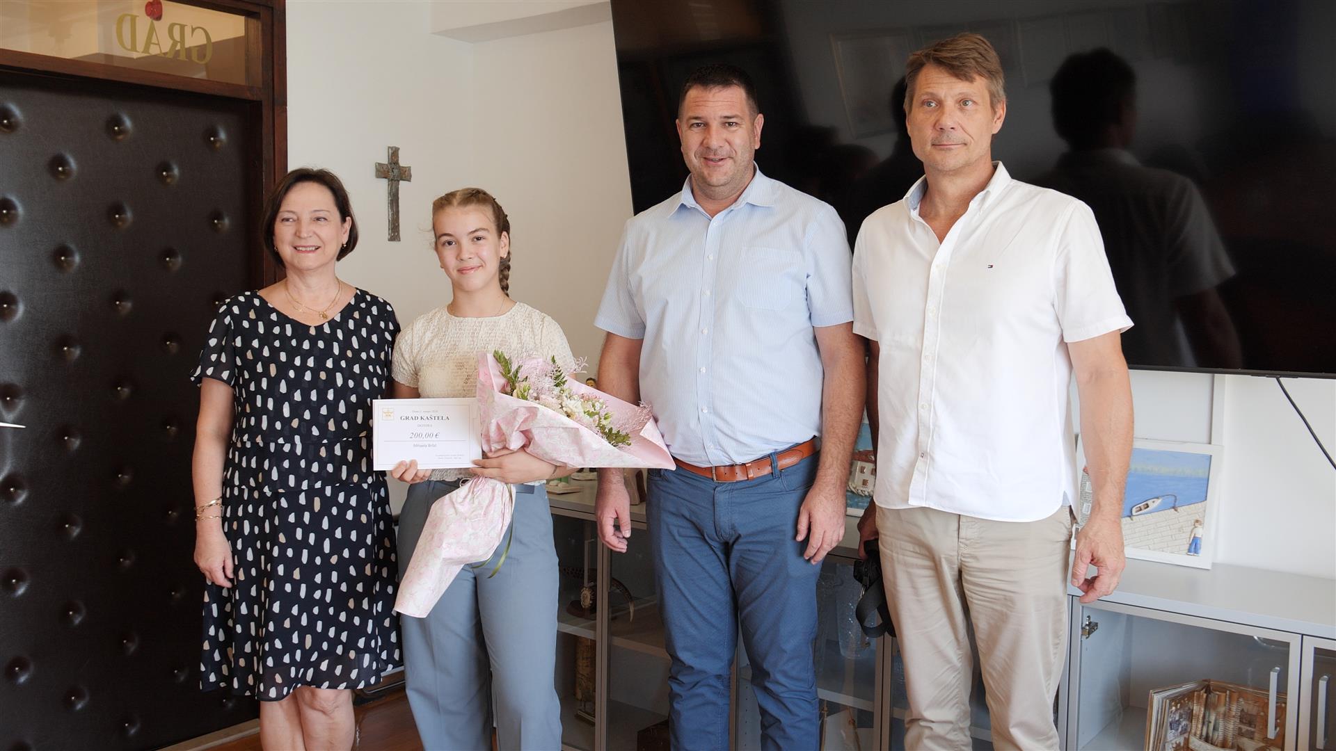Gradonačelnik i zamjenica čestitali su Mihaeli, njenim roditeljima, mentorici i školi na dosadašnjem uspjehu te su joj izrazili sreću u nastavku školovanja, naglasivši kako je pred njom sigurno svjetla budućnost, a dodali su kako je uz česte prijeme uspješnih sportaša, čast u gradu imati i darovite učenike koji svojim postignućima također promiču Kaštela. Kao nagradu i poticaj za daljnje uspjehe Mihaeli je uručen poklon vaučer.